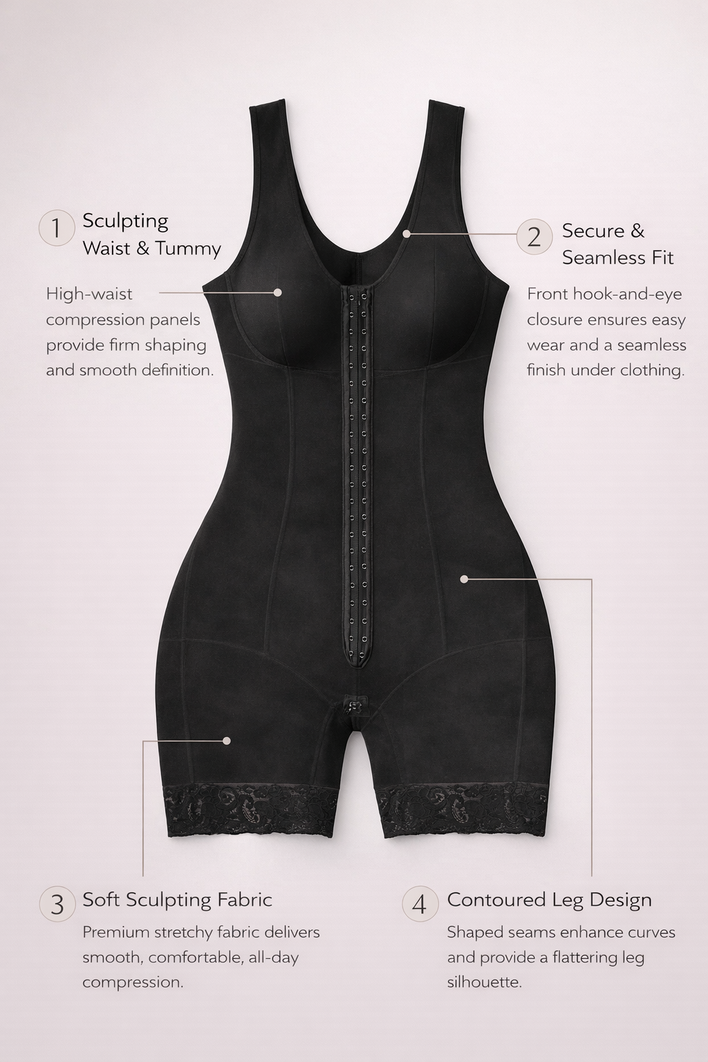 ENHANCED CURVE DEFINITION WITH EASE - This shapewear includes a convenient open-crotch zipper, allowing you to use the restroom without full removal. Its delicate lace-trimmed leg hems prevent rolling. Elevate your silhouette with the effortless butt-lifting design, complementing any outfit with striking curves.