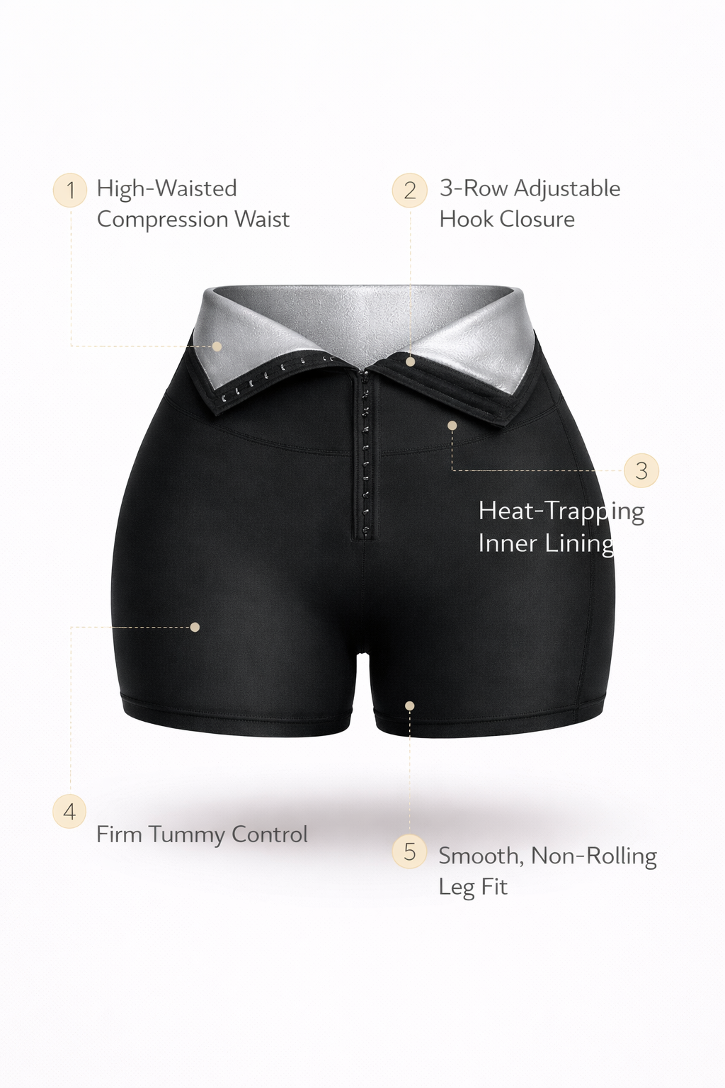 Meet your go-to Hot Thermo Sweat Leggings—a high-waisted, slimming shapewear short designed to help you feel snatched, supported, and smooth during workouts or everyday wear. The high-rise compression waistband targets the midsection for a flatter look, while the 3-row adjustable hook closure + front zipper lets you customize tightness as your body changes. A thermo inner lining helps trap heat around the core to enhance a “sweat-ready” feel, and the short-leg cut offers comfortable coverage with a smooth, stay-put fit.